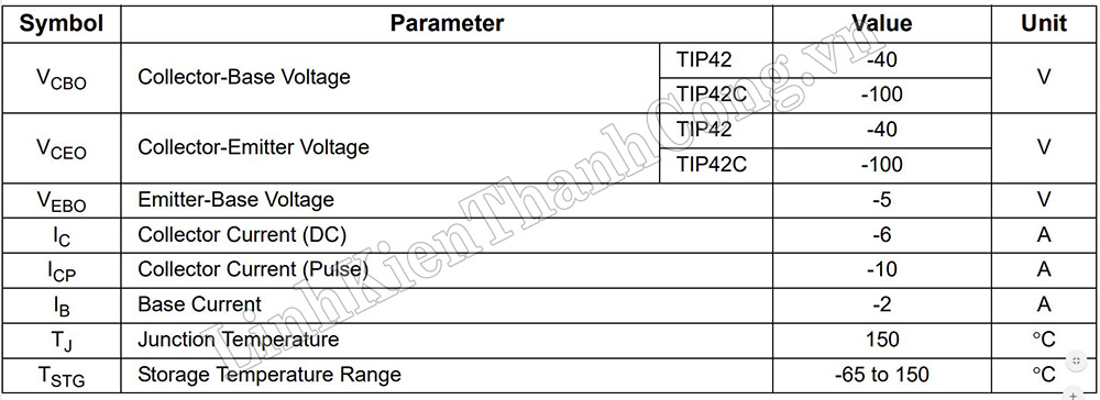 - Dòng điện cực đại: IC = - 6A