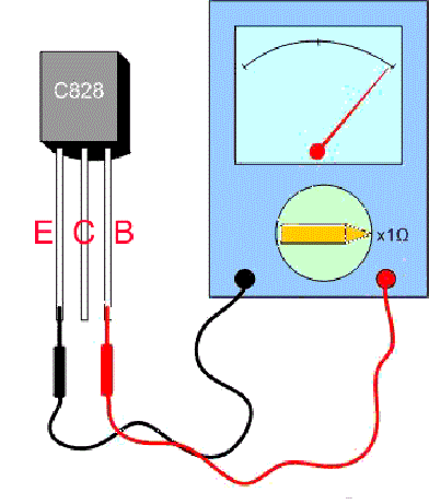 + Kiểm tra Transistor thuận PNP tương tự kiểm tra hai Diode đấu chung cực Katôt, điểm chung là cực B của Transistor, nếu đo từ B sang C và B sang E ( que đỏ vào B ) thì tương đương như đo hai diode thuận chiều => kim lên , tất cả các trường hợp đo khác kim không lên.
