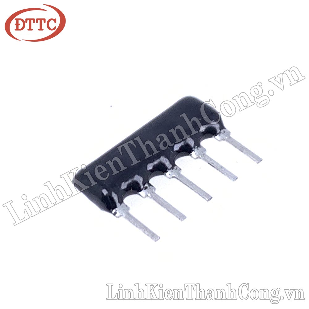 - Điện trở băng 1K Ohm 5 chân là một mạng điện trở, gồm 5 điện trở có cùng giá trị 1K Ohm được kết nối với nhau. Điện trở băng 1K Ohm có một chân chung, các chân còn lại nối với chân chung qua 1 điện trở, giá trị điện trở đó thường được ghi trên thân.