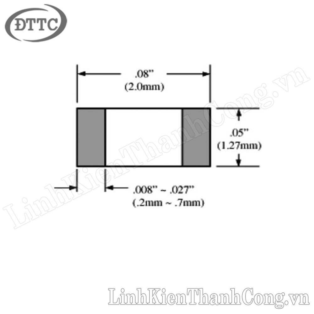 - Kích thước: Dài 2.00mm x Rộng 1.25mm x Cao 0.65mm