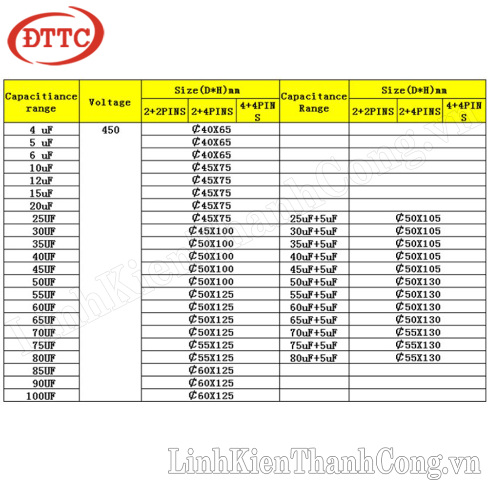 - Dung lượng: 100uF