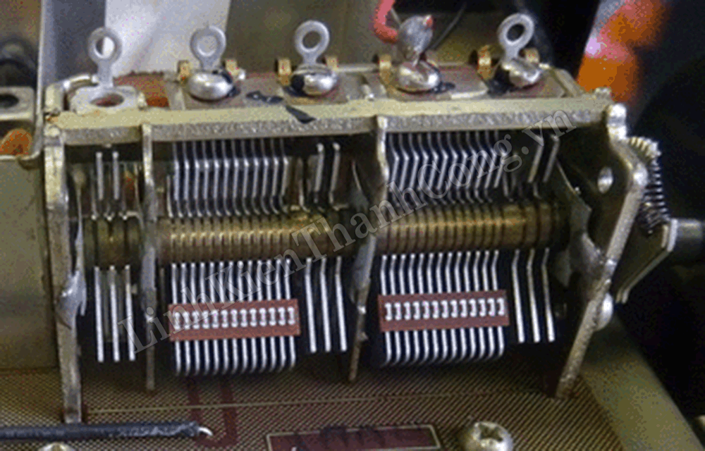 1. Tụ xoay (Air-Varialbe Capasitors): gồm các lá động và lá tĩnh được đặt xen kẽ với nhau, hình thành nên bản cực động và bản cực tĩnh. Khi các lá động xoay làm thay đổi diện tích hiệu dụng giữa hai bản cực do đó thay đổi giá trị hiệu dụng của tụ. Giá trị hiệu dụng của tụ xoay phụ thuộc vào số lượng các lá kim loại và khoảng không gian giữa các lá kim loại (Giá trị MAX 50uF – 1000uF và giá trị MIN là n.pF). Điện áp đánh thủng cực đại dao động trong khoảng vài KV. Tụ xoay là tụ không phân cực và thường được sử dụng trong máy thu Radio để chọn tần.