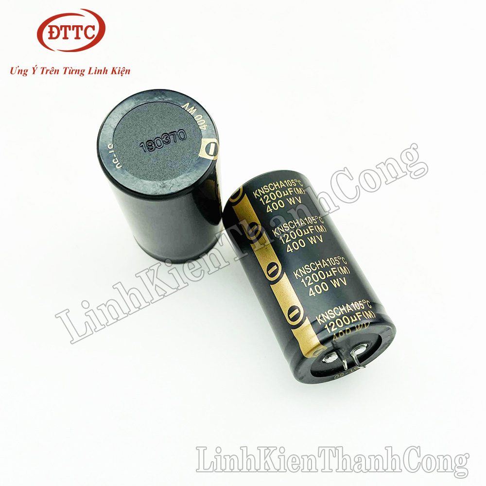 - Tụ Hóa KNSCHA 1200µF 400V là tụ lọc cao áp dung lượng lớn, chuyên dùng cho nguồn công suất cao, máy hàn, bộ inverter, UPS, biến tần, bộ nguồn công nghiệp và hệ thống năng lượng. Với điện dung 1200µF và điện áp chịu đựng 400VDC, tụ cho khả năng lọc phẳng điện áp DC, giảm gợn sóng ripple, giúp thiết bị vận hành ổn định và bền bỉ ngay cả trong điều kiện tải nặng.
