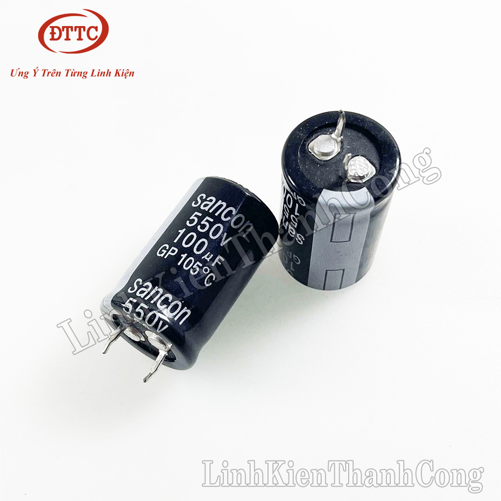 - Với điện dung 100µF và điện áp chịu đựng lên đến 550VDC, tụ SANCON 100µF 550V đáp ứng tốt các yêu cầu của mạch nguồn AC-DC, chỉnh lưu công suất lớn, và bộ lọc nhiễu tần số cao trong thiết bị điện tử, điện công nghiệp.